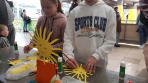 Master-class organizat de DGETS a Consiliului Municipal Chișinău, în colaborare cu Uniunea Națională a Studenților și Tineretului, în incinta Centrului Comercial Jumbo. Cadrele didactice Chiruța Diana și Chiruța Cristina, colaboratori a Centrului de creație tehnică, sectorul Buiucani, au dat curs inițiativei DGETS de a se implica în desfășurarea unei activități, care a reușit să implice un număr considerabil de copii cointeresați să abordeze tehnica origami.