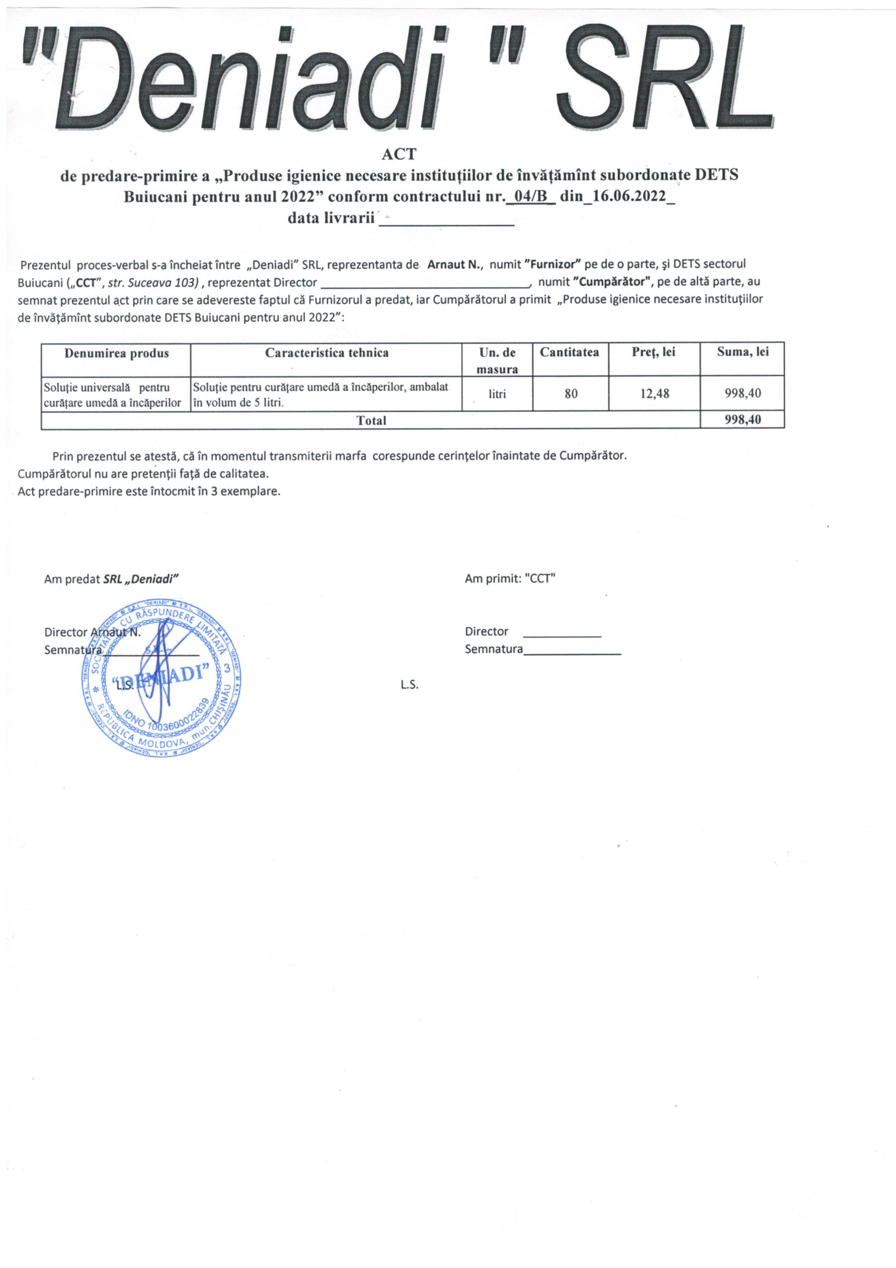 - CCT Buiucani act primire sapun lichid